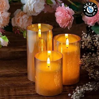 GLASS FLAMLESS CANDLES FLICKERING (SET OF 3)