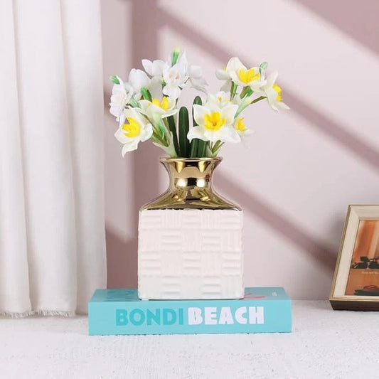 RAISED TEXTURE WHITE & GOLDEN VASE (2 PCs)