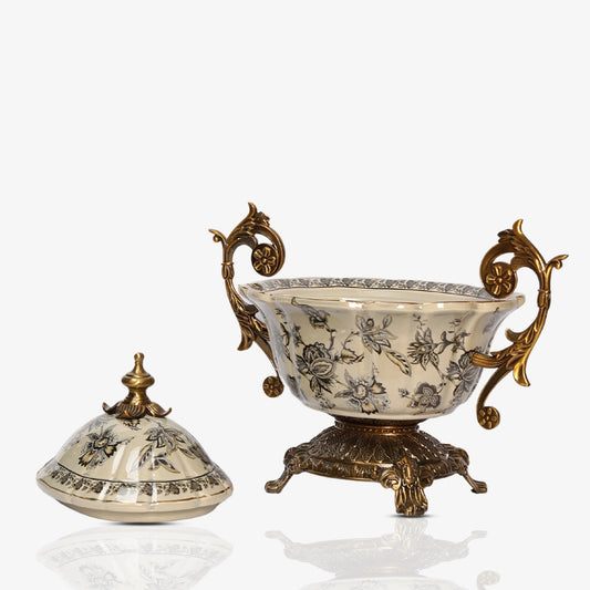 PRIVILEGED LID CANDY WITH BRASS BASE & HANDLES