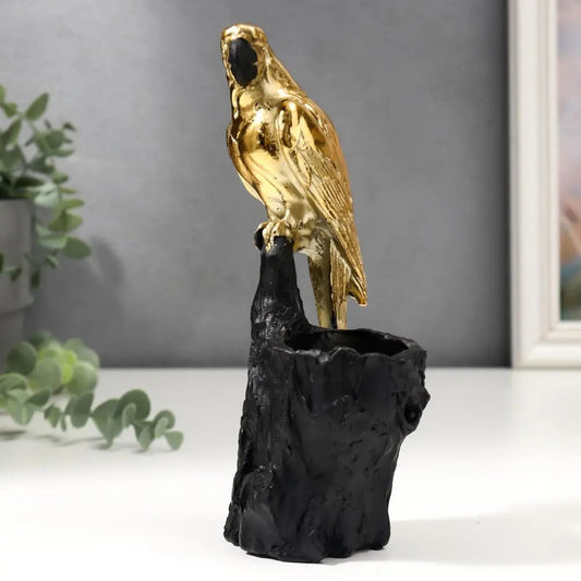 GOLDEN PARROT WITH BOWL SCULPTURE