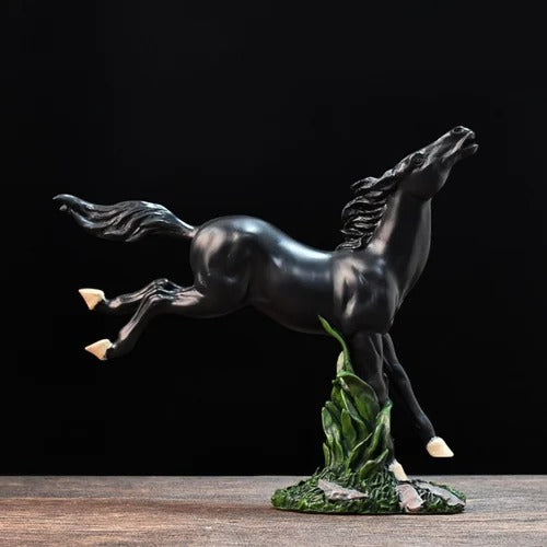 BLACK JUMPING HORSE STATUE