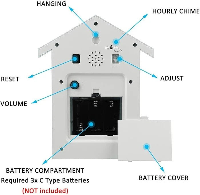 Crafted with expert precision, the Cuckoo Cartoon Bird Clock is a stunning wall mounted alarm clock featuring a cute cucu cartoon bird design. Its unique and charming appearance will add a touch of whimsy to any room. The high-quality materials and precise timekeeping make it both a stylish and reliable option for any household.
