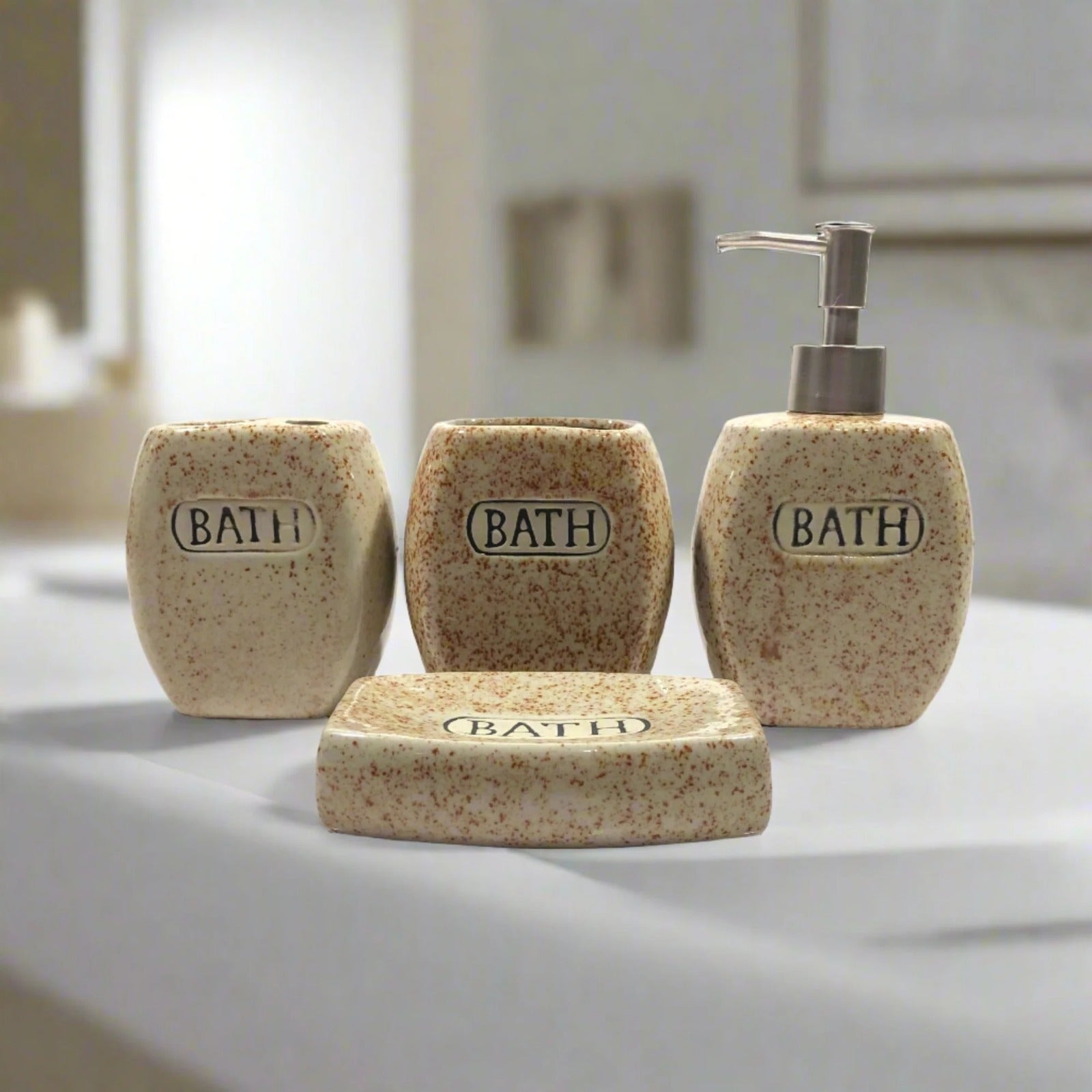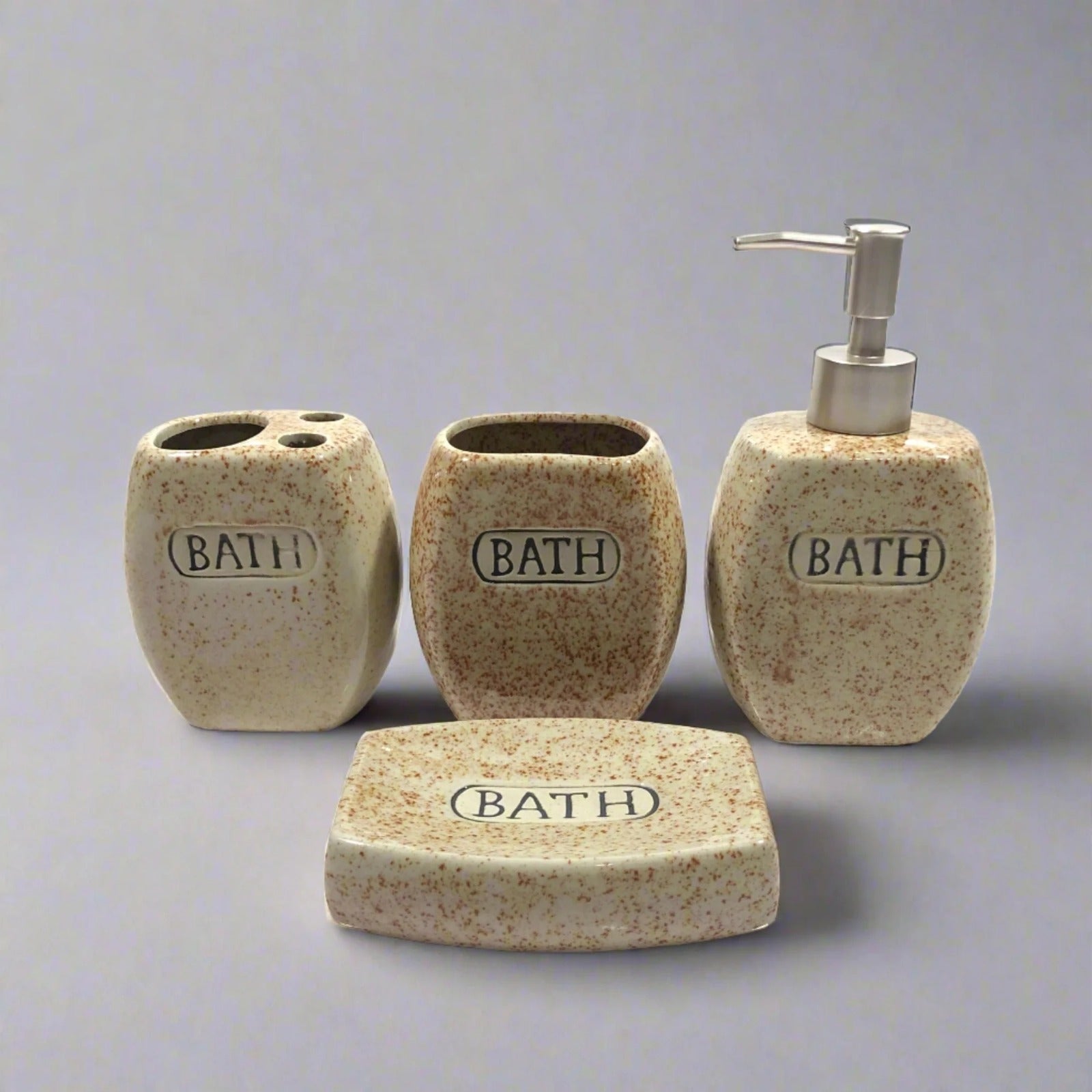 - Introduce a touch of elegance and sophistication to your bathroom with our stunning Ceramic Bath Set! Made from high-quality materials and adorned with charming brown dots, this set is perfect for adding a touch of style to your daily routine. Pamper yourself in luxury with our Ceramic Bath Set - a must-have for any bathroom!
