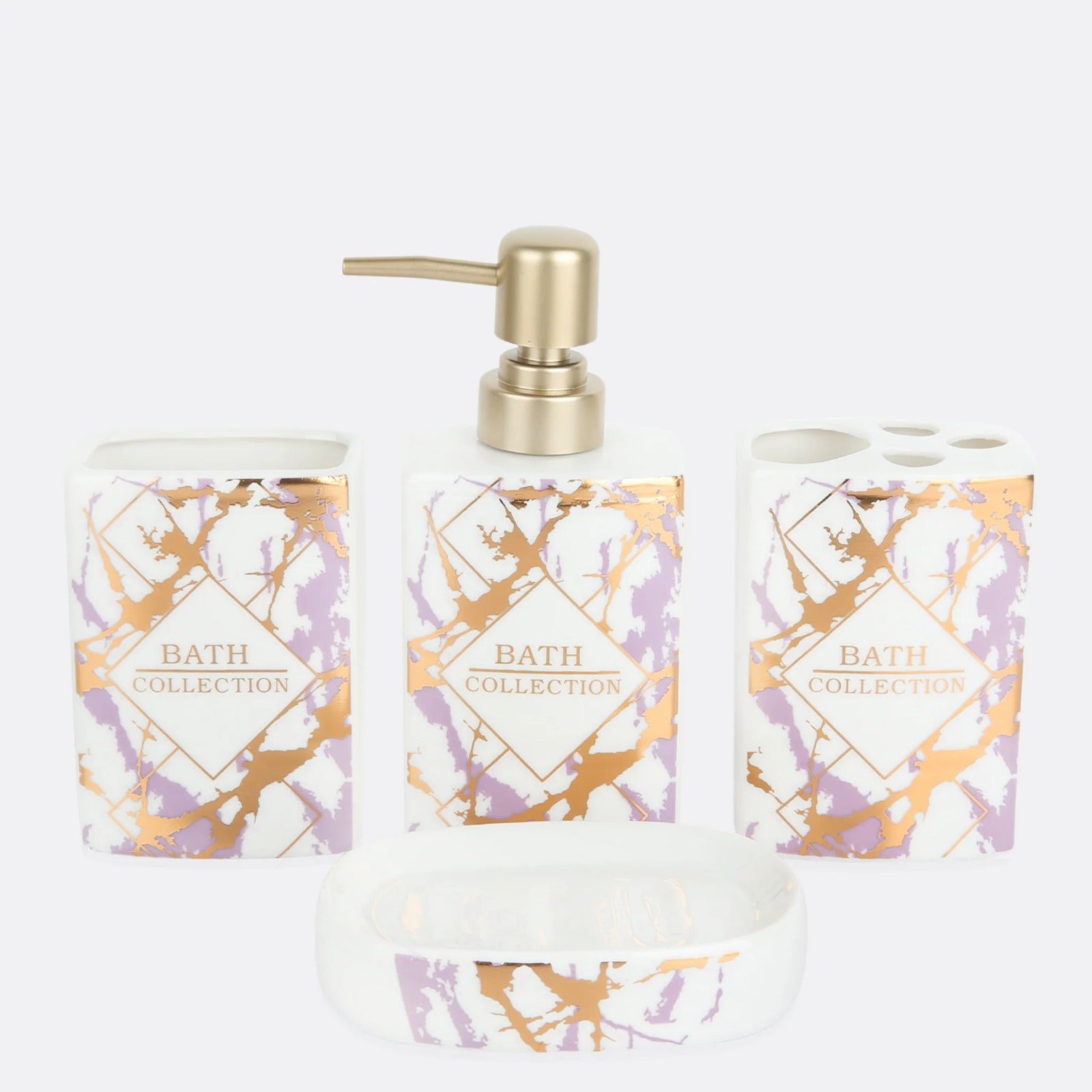 - 1 Soap Dispenser, 1 Tumbler, 1 Soap Dish, 1 Brush Holder=