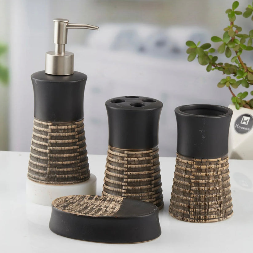 - 1 Soap Dispenser, 1 Tumbler, 1 Soap Dish, 1 Brush Holder