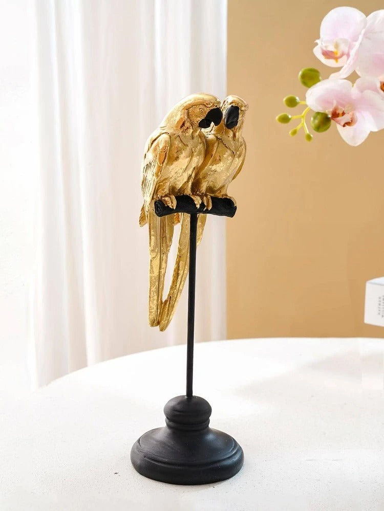 A Pair of Gold Parrots on Tree , Decorative Item For Table Top Display. Perfect For Table Top Home Decoration or Office Decoration.