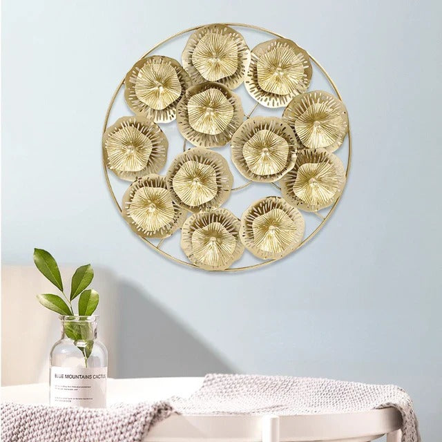 Elevate your walls with our Hanging Iron Round Wall Decoration in a luxurious golden color. This stylish piece features a circular design with intricate details, crafted from high-quality iron and finished in a warm, sun-kissed gold. Perfect for adding a touch of glamour and sophistication to any room."