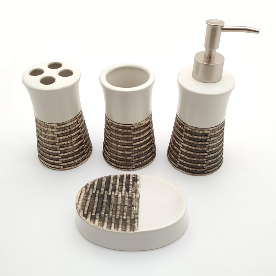 HALF WHITE TEXTURE CERAMIC BATH SET