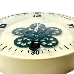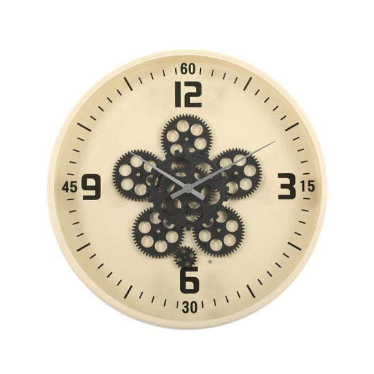 HAMLIN BEIGE METAL MOVING COGS WALL CLOCK