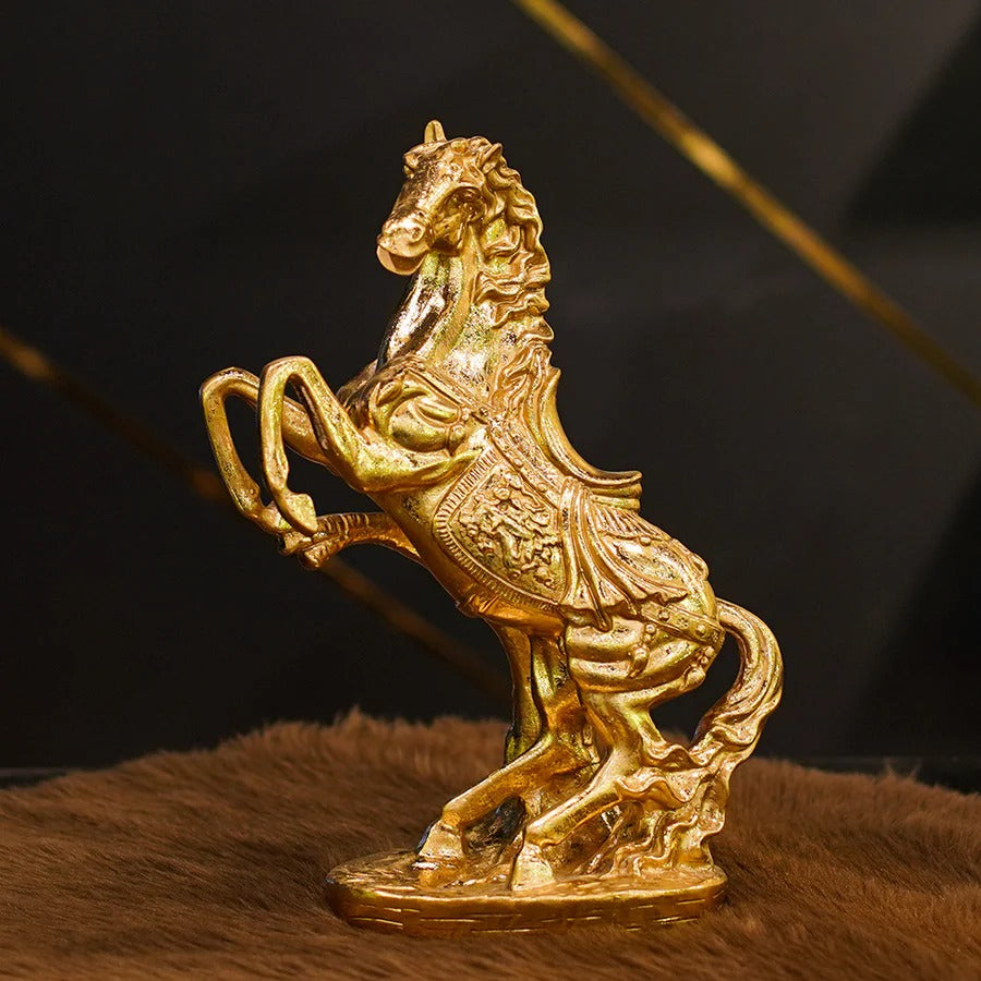 Lustrous gold horse figurine, adding a touch of elegance and luxury to your home decor.