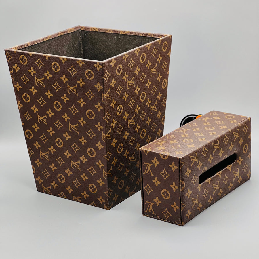Elevate your space with the iconic elegance of the LOUIS VUITTON Monogram Basket and Tissue Box Set. Crafted to perfection, this set combines luxury and practicality seamlessly. Shop now to add a touch of sophistication to your home décor."