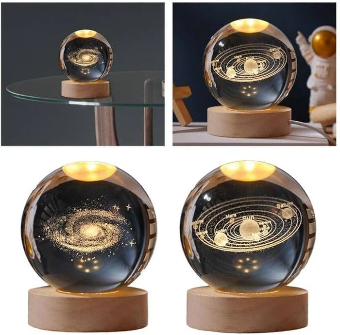 The Solar System Night Light Galaxy Crystal Ball features a beautifully detailed galaxy within a crystal sphere. Powered by USB, it provides a soft, mesmerizing glow, making it an ideal decorative accent for bedrooms, offices, or as a unique gift.