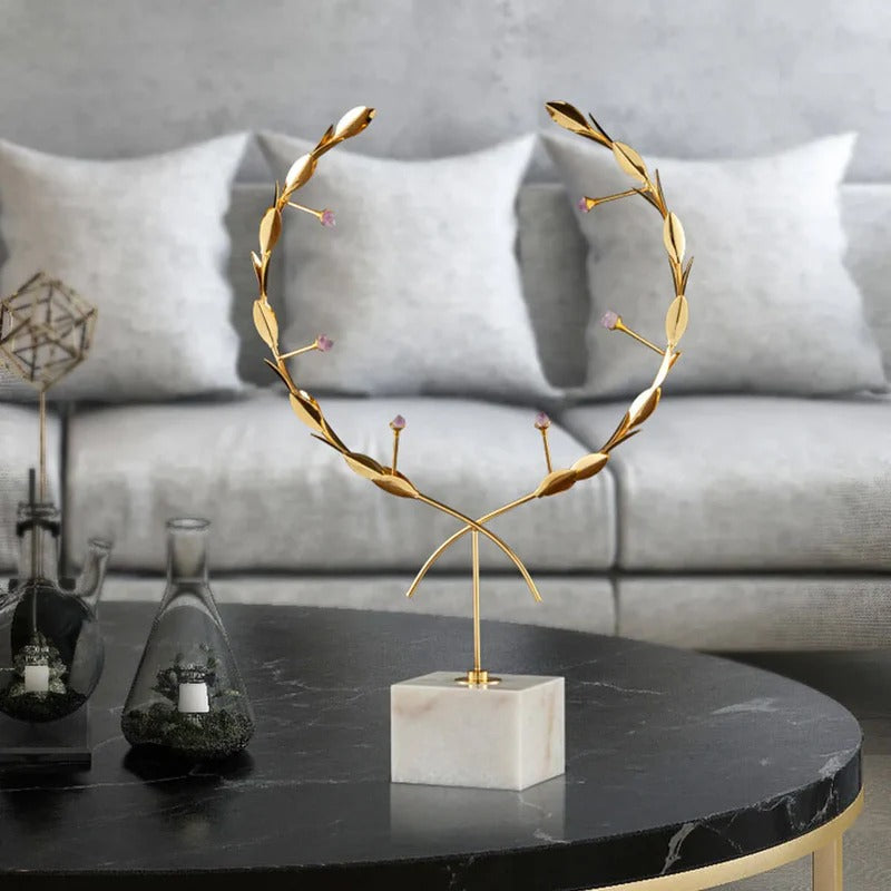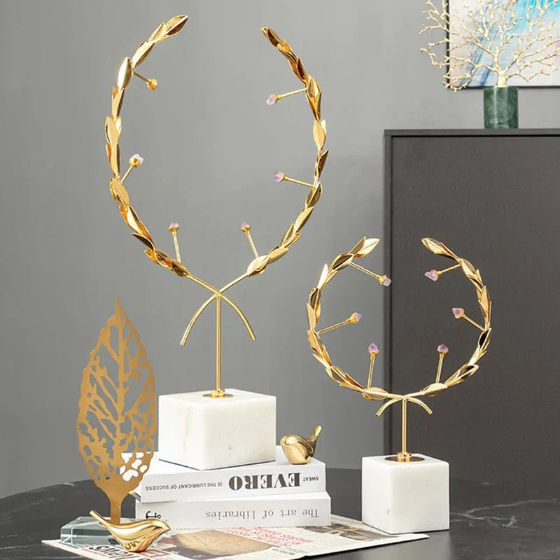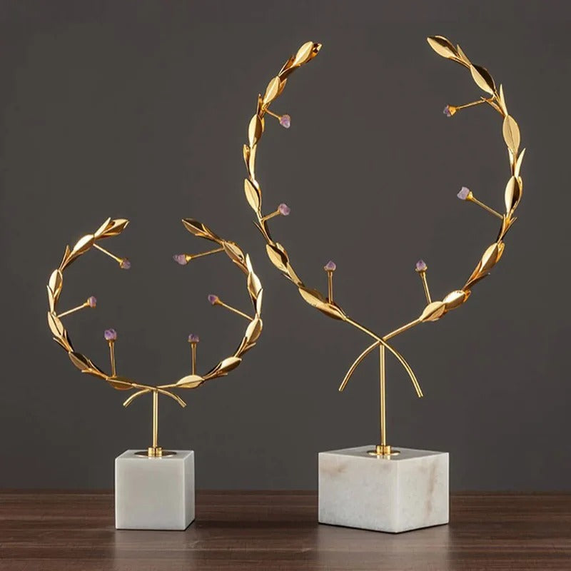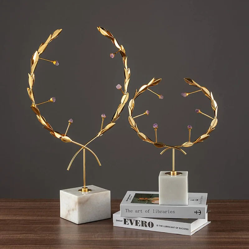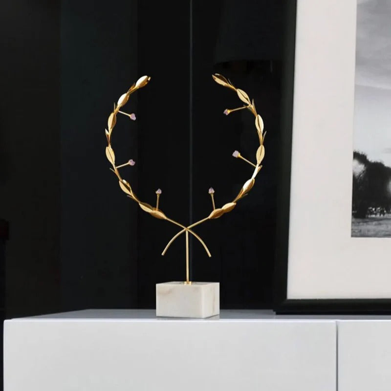 The Laurel Wreath symbolizes victory and is often depicted as a metal sculpture. It is made up of laurel leaves, a symbol of triumph in ancient Greece, woven into a circular shape. The metal sculpture represents the timeless, enduring nature of victory and is often used as a decorative item, trophy, or symbol of achievement. Whether displayed on a wall or placed on a shelf, the Laurel Wreath Metal Sculpture serves as a symbol of accomplishment and a reminder of past victories.