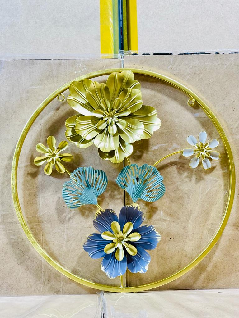 METALLIC ROUND BLUE FLORET WALL HANGING