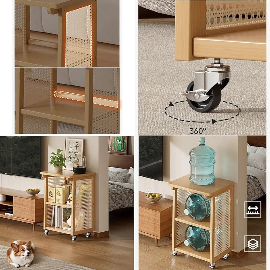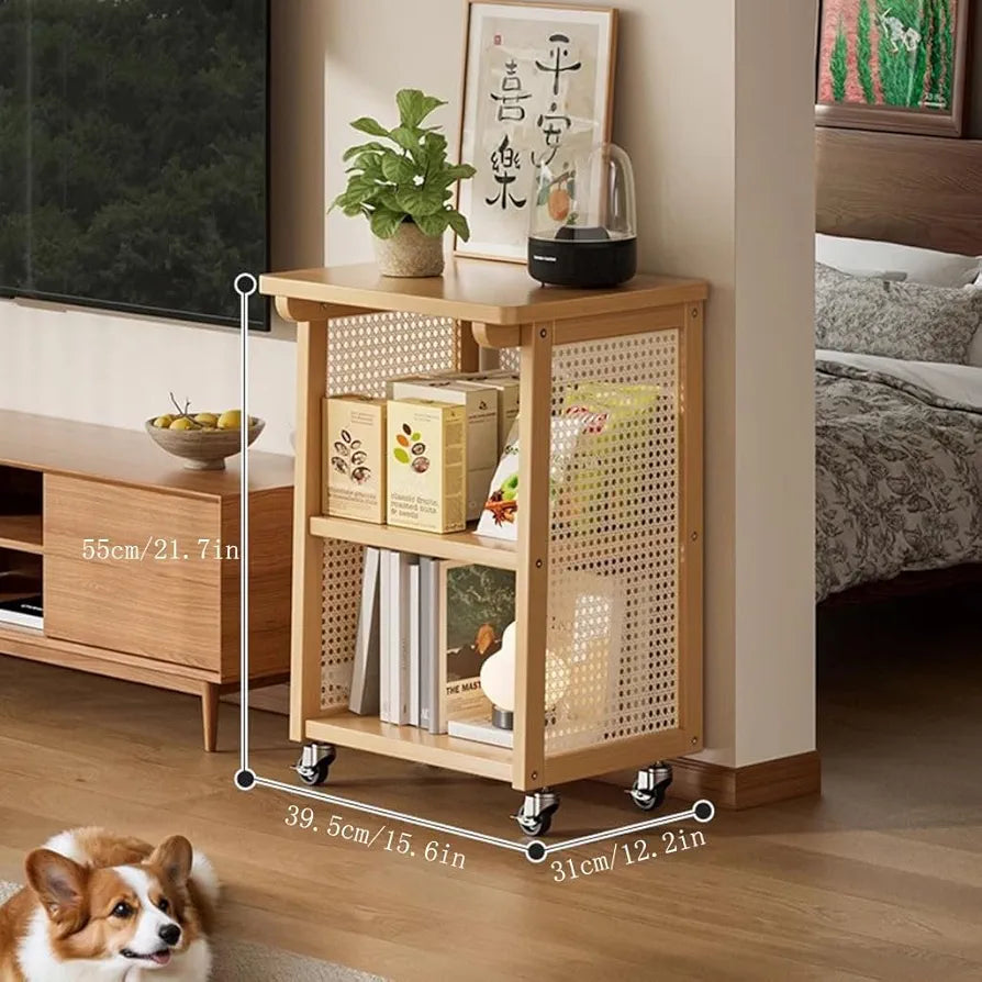 MOVING TABLE WITH 3 STORAGE SHELVES
