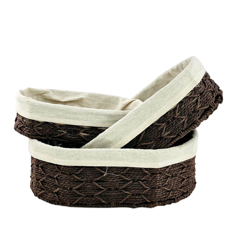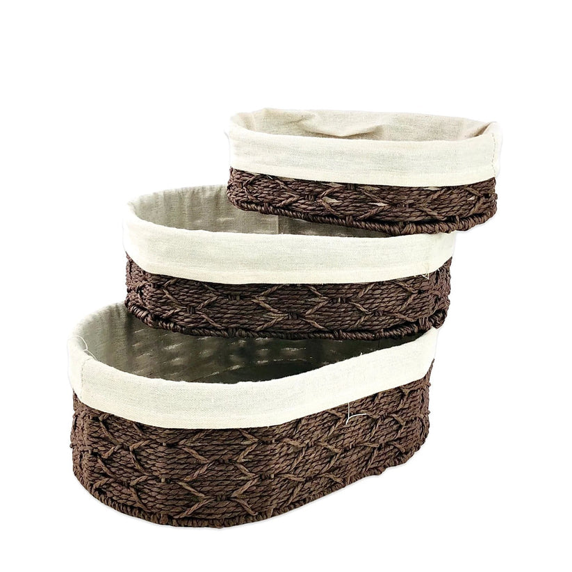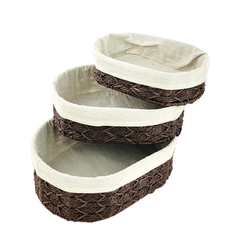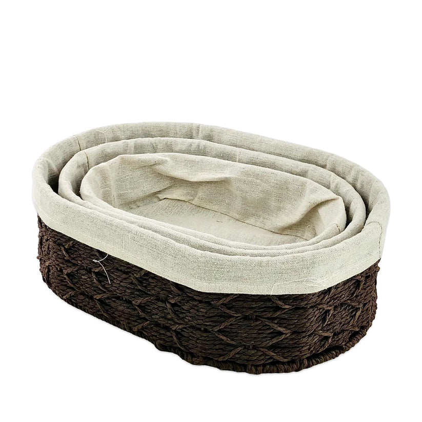 OVAL JUTE & LINEN TOWEL BASKET (SET OF 3)