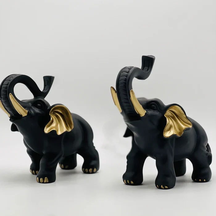 RESIN BLACK ELEPHANT STATUE (SET OF 2)
