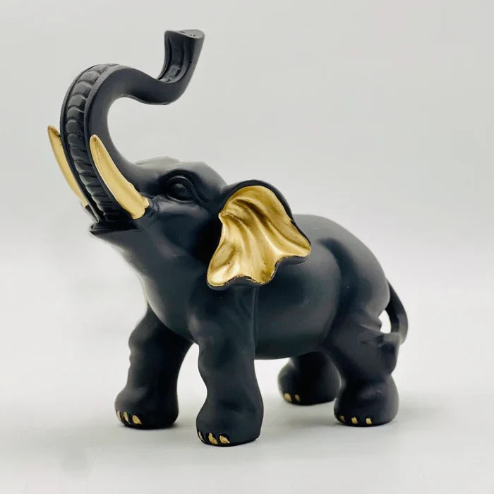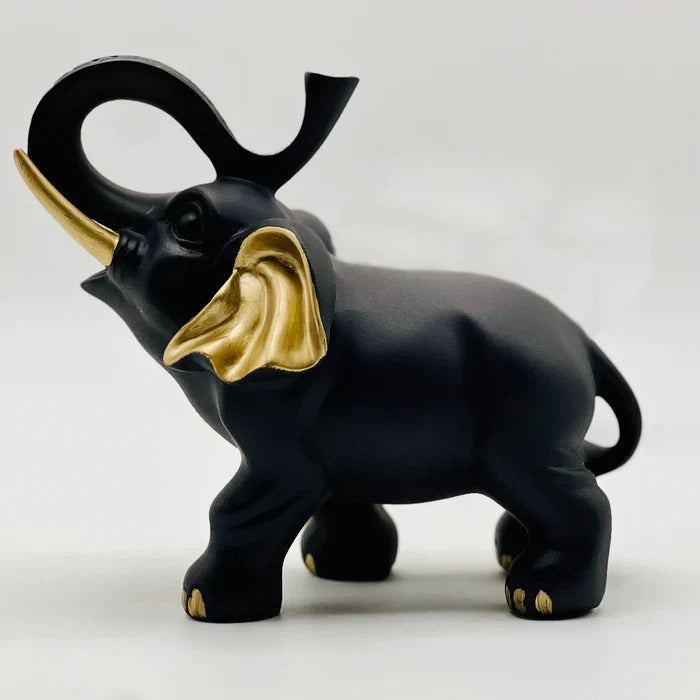 This sleek resin elephant statue showcases a majestic black finish, highlighting the gentle giant's rugged texture and wise expression. Its intricate details and sturdy base make it a striking addition to any room, symbolizing strength, wisdom, and good fortune in a modern and sophisticated way."