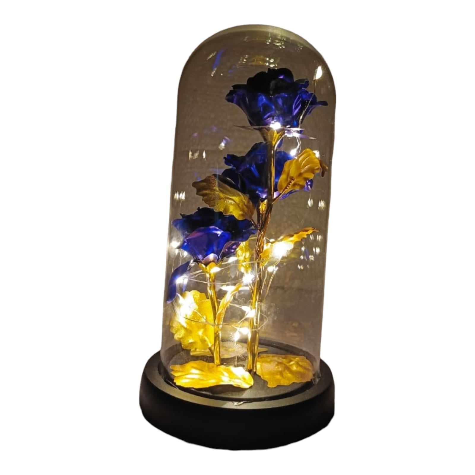 1x Eternal Rose Under Dome with LED, Beauty and the Beast blue Eternal Flower, Eternal Rose for Women for Valentine's Day, Mother's Day, Birthday, Christmas