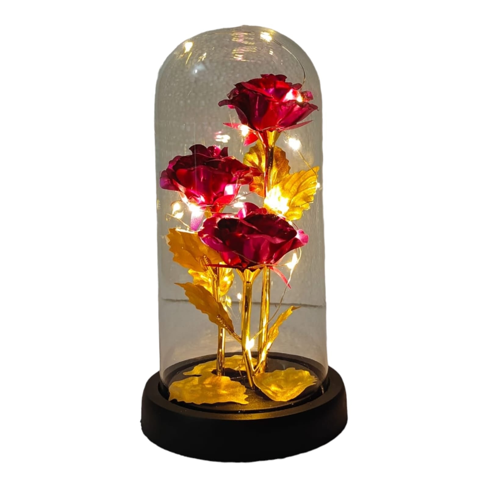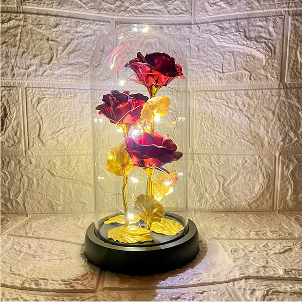1x Eternal Rose Under Dome with LED, Beauty and the Beast red Eternal Flower, Eternal Rose for Women for Valentine's Day, Mother's Day, Birthday, Christmas