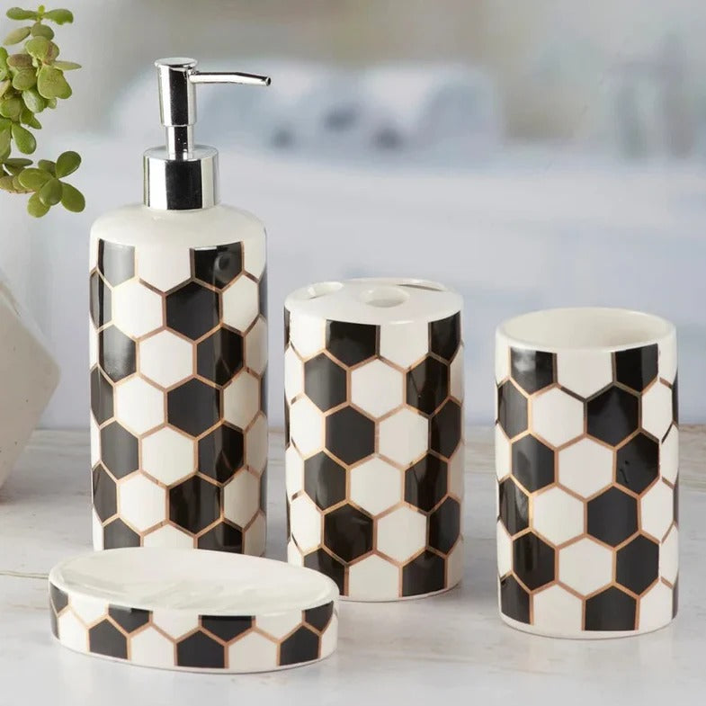 1 Soap Dispenser, 1 Tumbler, 1 Soap Dish, 1 Brush Holder