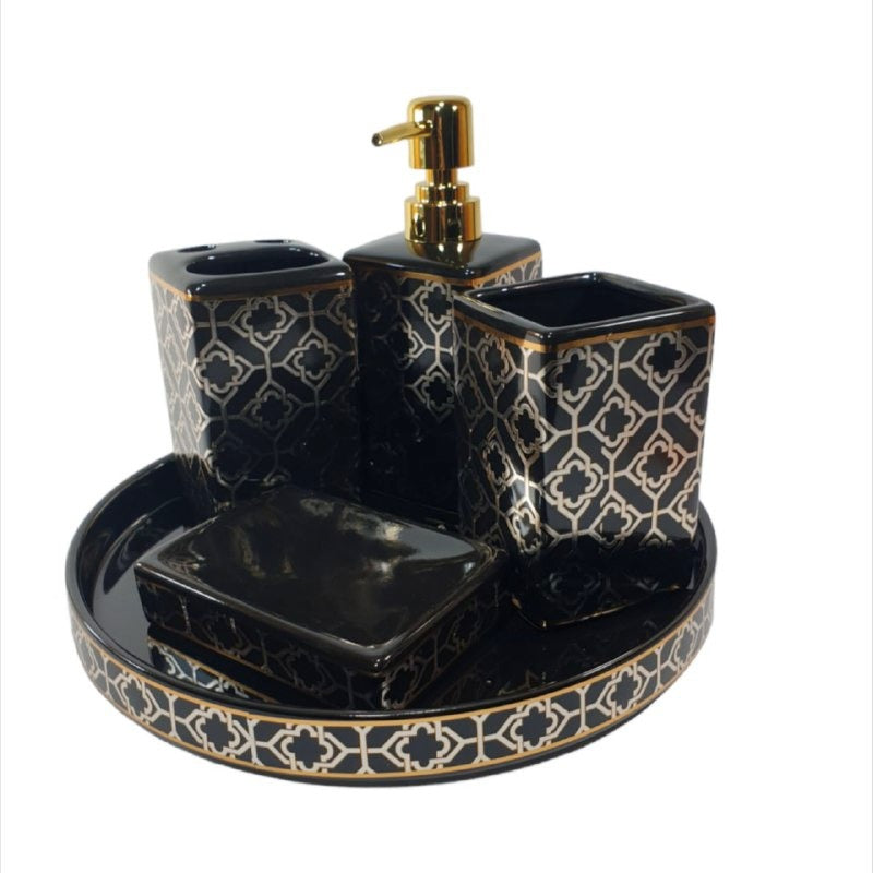 Create a brighter and functional counter with this thoughtfully designed ceramic bath set. Luxury ceramic with a very practical round tray to keep all accessories..Â