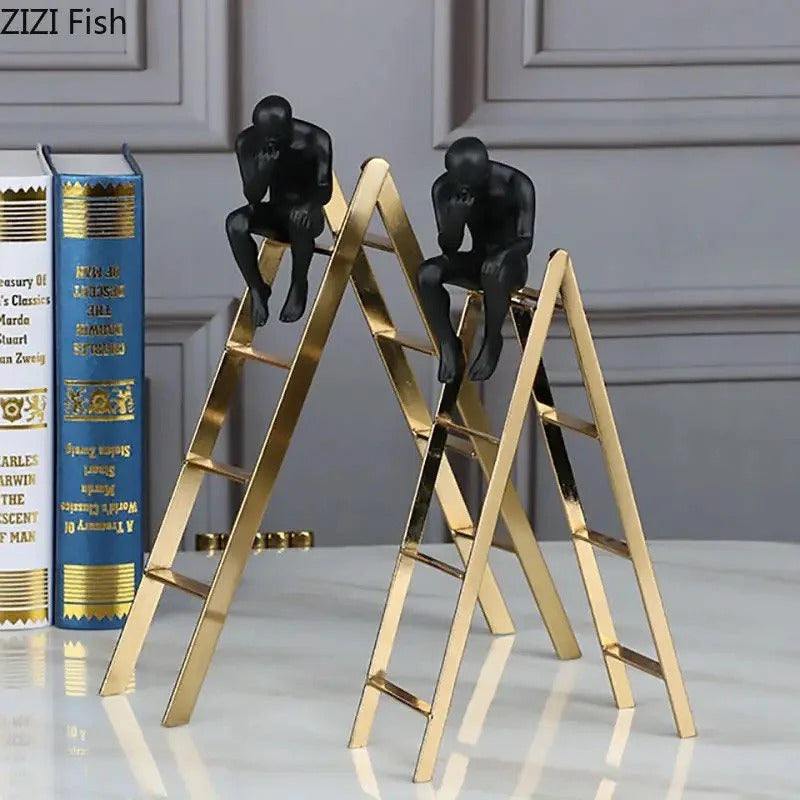 Thinker Sculpture Cute Thinker on The Stairs Window Display Bookshelf Classical Home Decoration Black Man MetalĀ