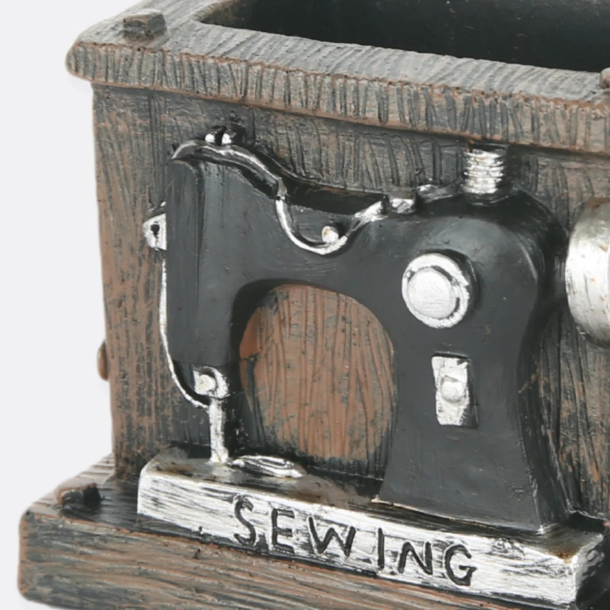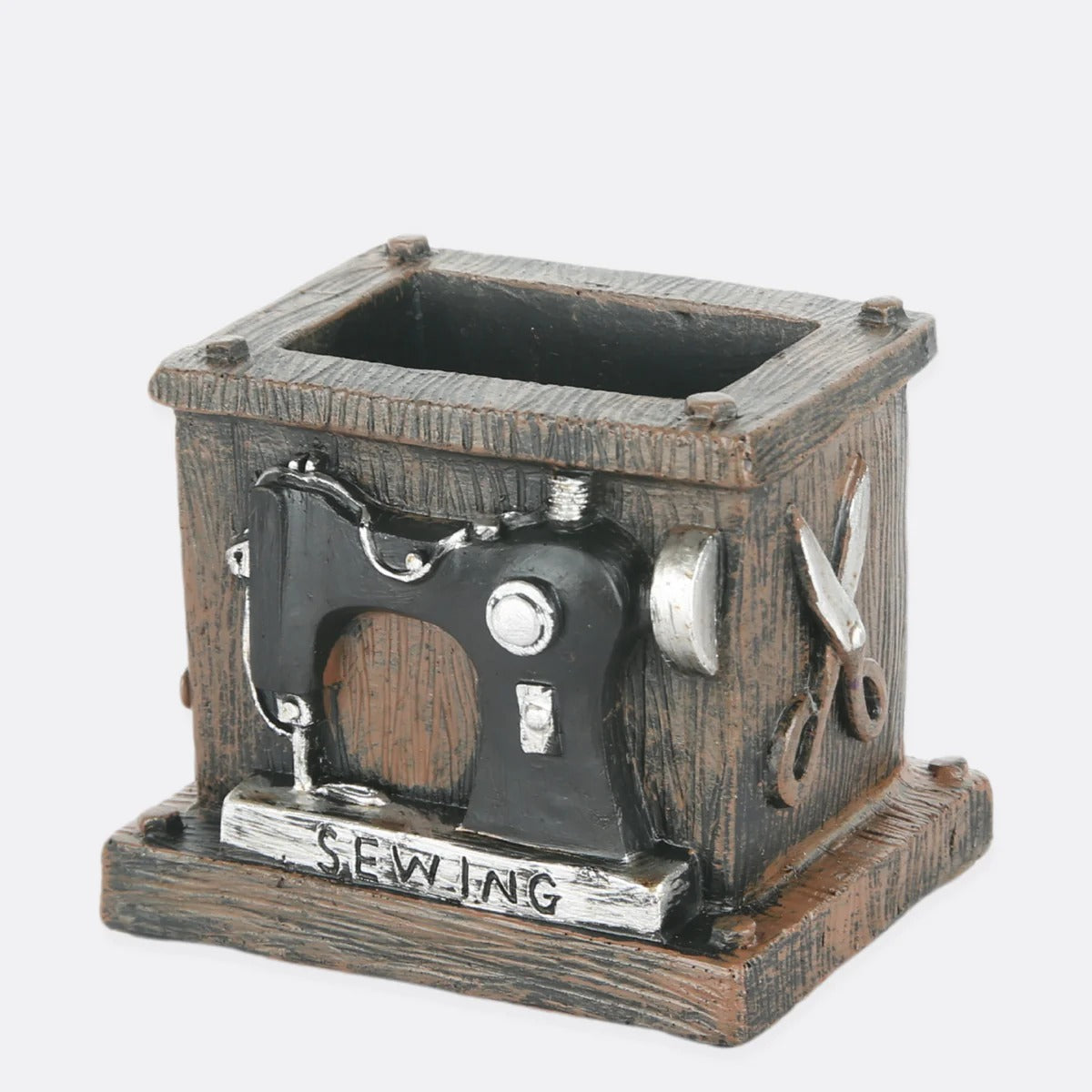 Elevate your home décor with our Vintage Sewing Machine Pen Holder. This charming accessory features a meticulously crafted miniature of a classic sewing machine, doubling as a stylish pen holder.
