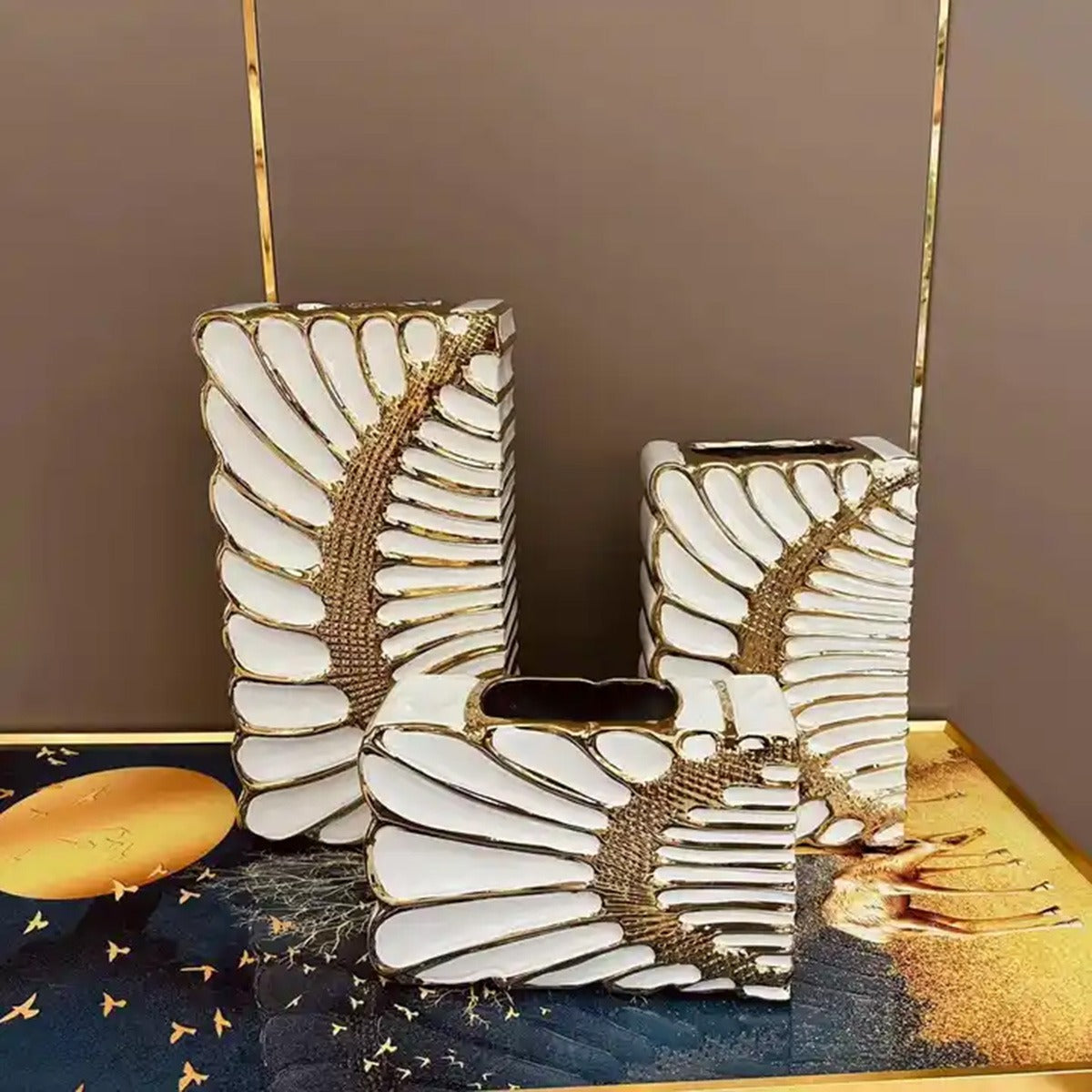 WHITE & GOLDEN DESIGN CERAMIC VASE (SET OF 3)