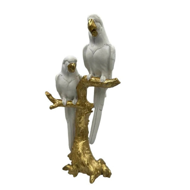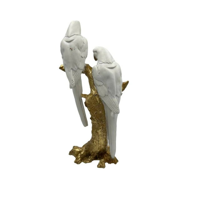 A Pair of White Parrots on Tree , Decorative Item For Table Top Display. Perfect For Table Top Home Decoration or Office Decoration.